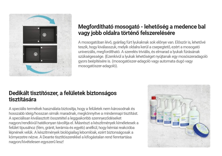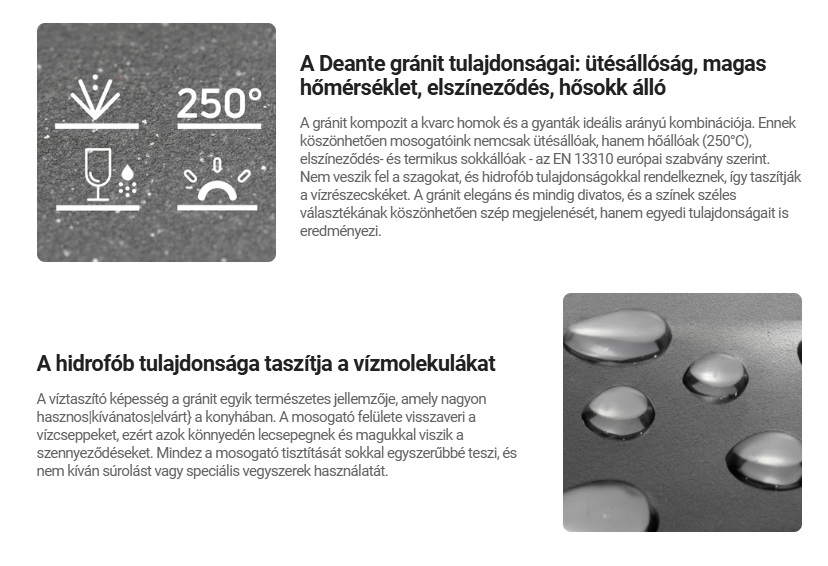 • Deante gránit tulajdonságai: ütésállóság, magas hőmérséklet, elszíneződés, hősokk álló